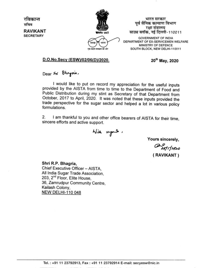 Shri Raj Paul Bhagria is the Chief Executive Officer of All India Sugar Trade Association [AISTA], New Delhi, which is an association of all stake holders in the sugar sector. A member of elite Indian Economic Service, he has served the Government of India in various senior positions dealing with economic policy matters, particularly those relating to sugar and sugarcane. He has held the position of Advisor in the Commission for Agricultural Costs & Prices (CACP) , a body responsible for advising the Government of India in the matter of pricing of crops and policies pertaining to the sector. He has also held the position of Chief Director, Sugar for over five years. He retired from service in July, 2012, after putting in 32 years. He is currently the Chief Executive Officer in the All India Sugar Trade Association. He is a Post graduate in Economics from Punjab University and M. Phil. (Economic Planning) from Glasgow University, U.K. He also hold the law degree from Delhi University.