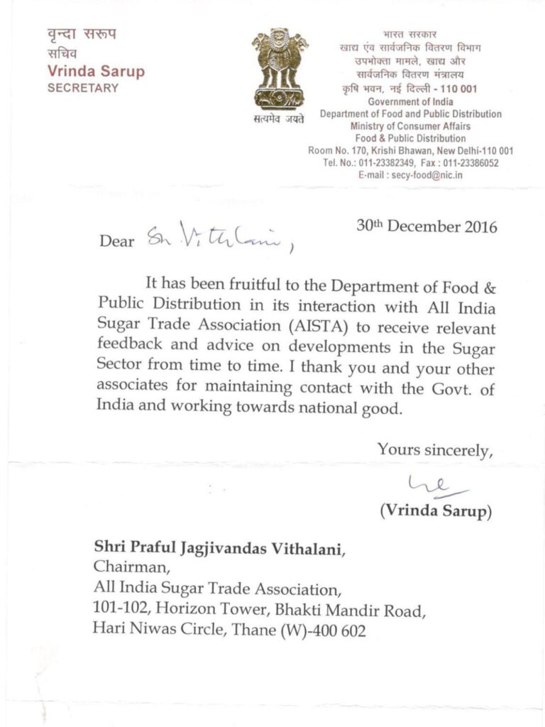 Shri Praful Vithalani is the proprietor of a renowned Sugar Brokerage House, Jagjivan Keshavji & Co, a second-generation firm. He enjoys unique respectability across the spectrum viz, the Government of India, sugar millers, trade houses, brokers, and sugar consumers. His views are sought for his impartiality and objectivity.True to the expanse of influence, he has been instrumental, along with some other like-minded persons, to form the All India Sugar Trade Association six years ago to be the representative voice of India’s sugar sector, be it Millers, Trade houses, Brokers, Sugar Distribution Trade, Superintendence Agencies, Brokerages, Forwarders, Investors, etc. He is the founder chairman of the Association. The Association has gained an exceptional measure of respectability in the short period of its existence.Prafulbhai, as he is affectionately addressed, has served the influential Bombay Sugar Merchants Association as a member of its Managing Committee for over 35 years, where he is respected for his mature counsel. He is an alumnus of Bombay University, which has conferred on him the degree of Bachelor of Commerce.