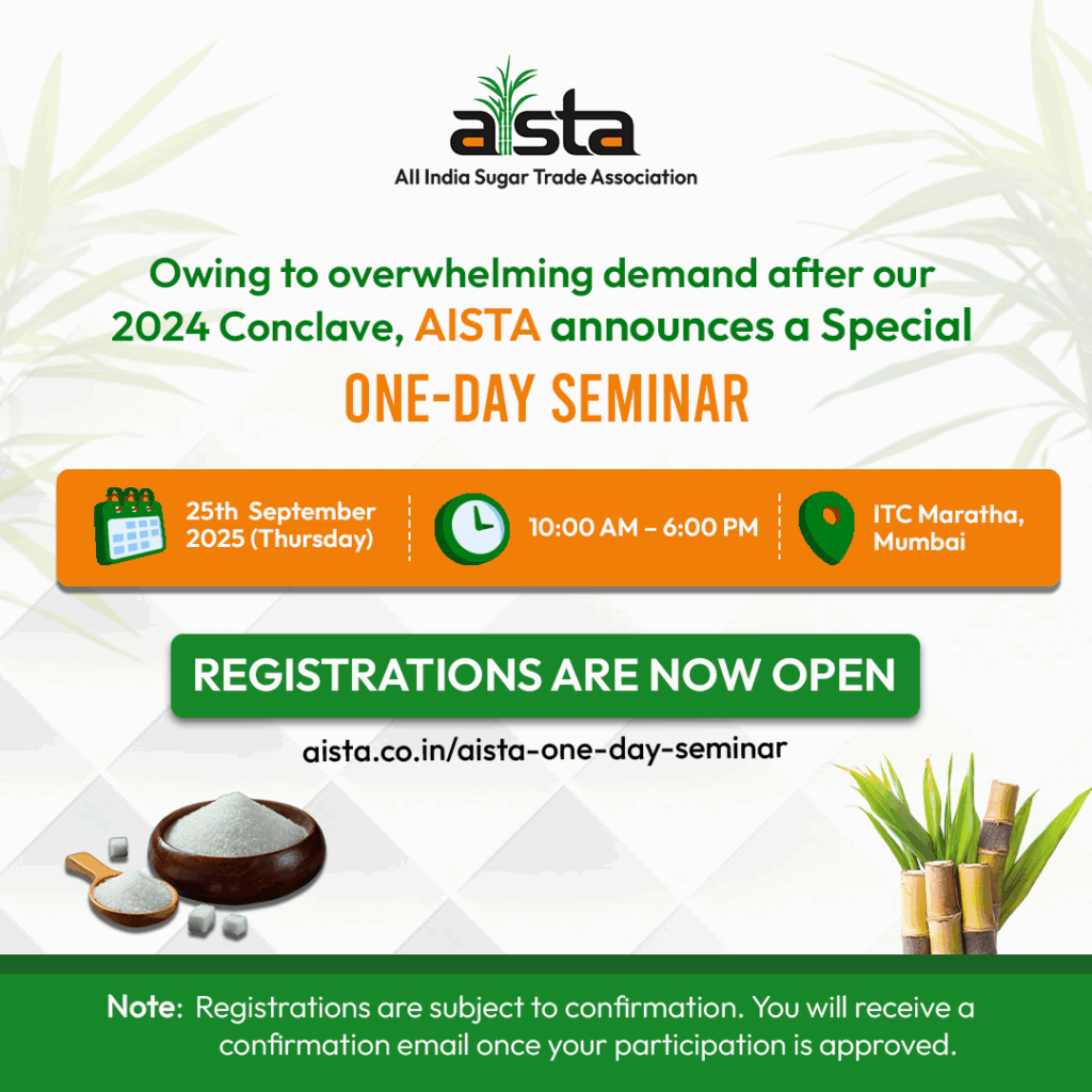 AISTA is pleased to announce a Special One-Day Seminar in response to the overwhelming demand following our 2024 Conclave. This exclusive seminar will bring together key stakeholders, policymakers, and industry leaders for a day of high-level discussions on the sugar sector. With insightful sessions on policy directions, market outlook, and industry perspectives, the seminar promises to deliver valuable takeaways for all participants.